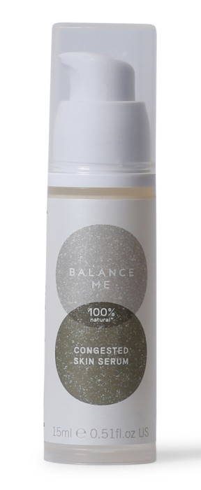 Balance Me Congested Skin Serum är en “on the spot” gel för ansiktet framtagen för att minska uppkomsten av plitor och lugna huden.