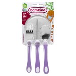 Eat like a pro! är praktiska barnbestick från Bambino, här i färgen lila. Besticksetet innehåller gaffel, kniv och sked och är till för barn som har lärt sig äta själva och nu är redo att äta med likadana bestick som mamma eller pappa.