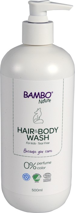 Bambo Nature Hair & Body Wash är en oparfymerad schampo/tvål för barn. Tvålen rengör både kropp, hår och känslig hårbotten samtidigt som den milda tvålen skyddar barnets ögon från irritation. (Denna tvål innehåller inte SLS och SLES, ämnen som oftast finns i tvålar för att de ska skumma, för att inte orsaka sveda i ögonen.)