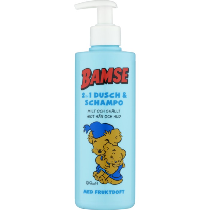 Bamse 2in1 Dusch & Schampo är en milt parfymerad duschgel och schampo, speciellt utvecklad för att passa barnets känsliga hud och hår. Produkten har ett hudnära pH vilket hjälper huden att behålla sitt naturliga pH-värde.