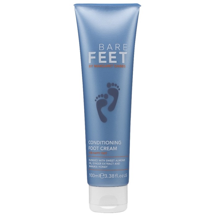 Bare Feet Conditioning Foot Cream är en vårdande fotkräm som kan användas dagligen. Fotkrämen innehåller sötmandelolja, ingefärsextrakt och manukahonung och mjukgör och återfuktar huden. Krämen har en upplyftande doft av grönt te och lime.