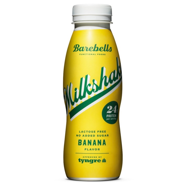 Barebells Milkshake Banana är en shake som innehåller 24 g protein per flaska. Barebells shake är laktosfri. Innehåller sötningsmedel.