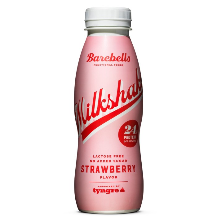 Barebells Milkshake Strawberry är en shake som innehåller 24 g protein per flaska. Barebells shake är laktosfri. Innehåller sötningsmedel.