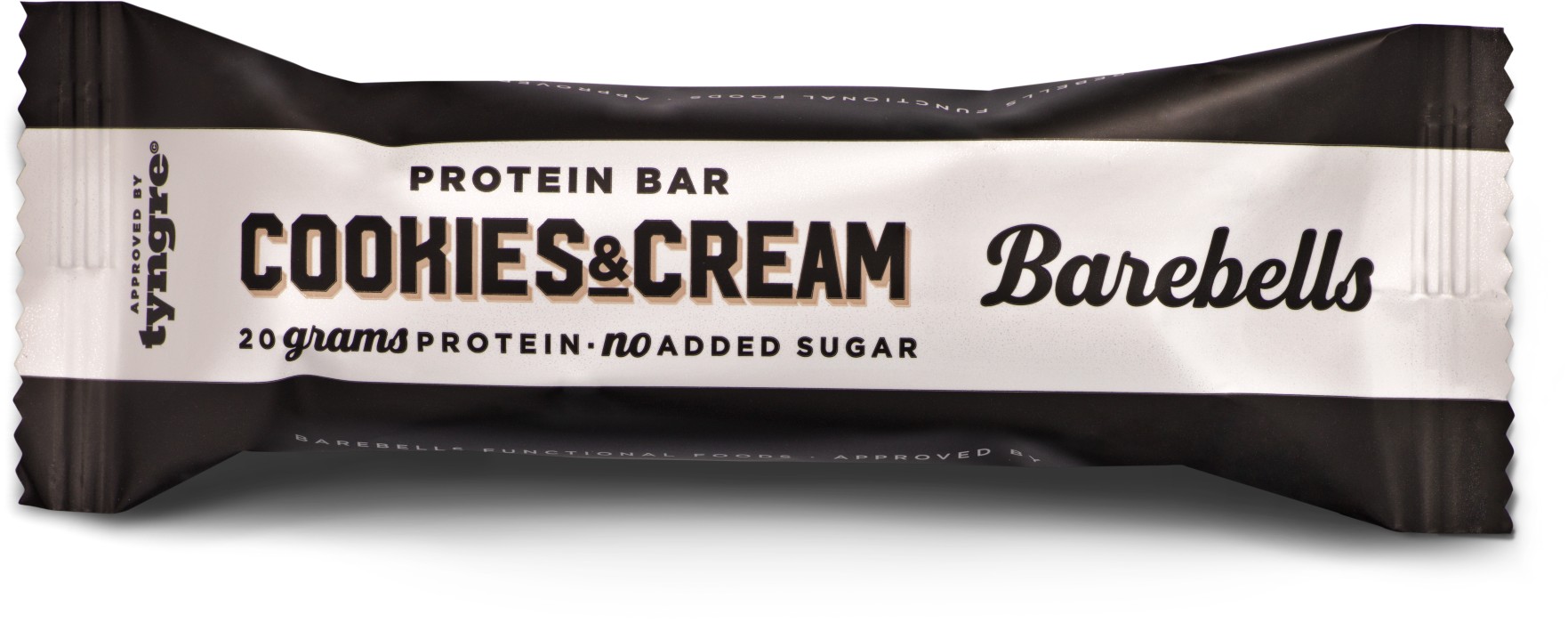 Barebells Protein Bar Cookies & Cream är en proteinbar med 20 gram protein.