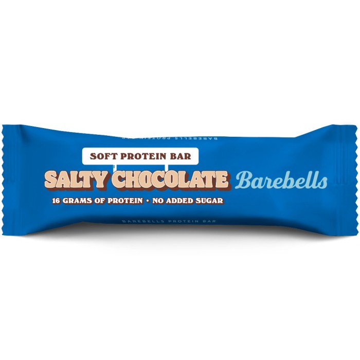 Barebells Soft Protein Bar Salty Chocolate är en mjuk proteinbar med chokladöverdrag. Denna bar har en smak av salt choklad. Innehåller sötningsmedel. Utan palmolja.