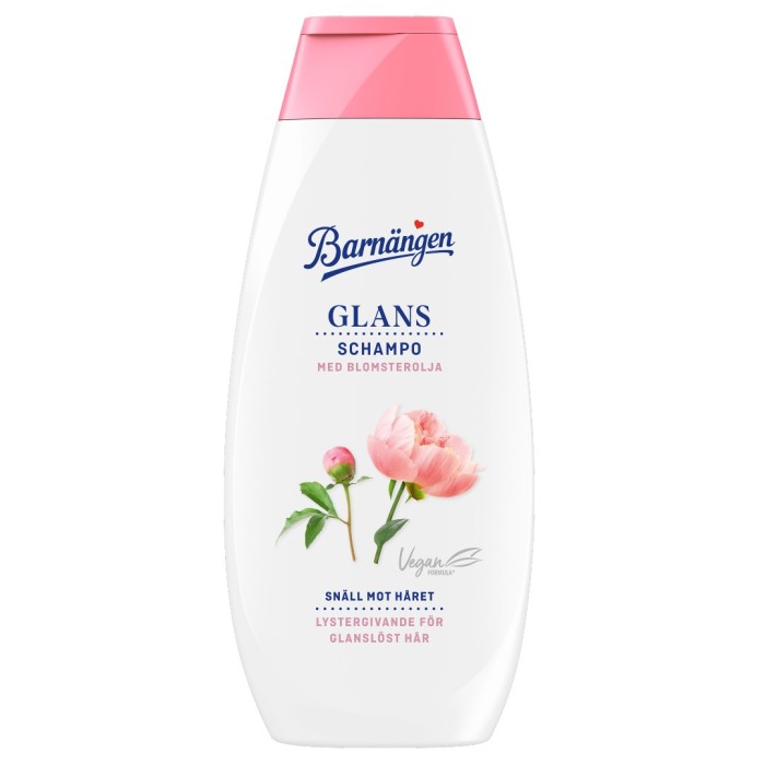 Barnängen Schampo Glans ger lyster till hår som känns trött och glanslöst. Schampot har en vegansk formulering och innehåller blomsterolja. Det reparerar och mjukgör håret från rot till topp utan att tynga ner.