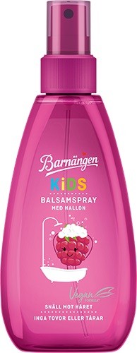 Barnängen Kids Balsamspray har en mild formulering och innehåller extrakt från hallon. Sprayen är framtagen för att passa barns känsliga hår och gör håret mjukt och lättare att kamma. Sprayas i blött eller handdukstorkat hår. För barn från 3 år.