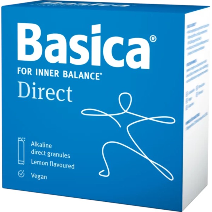 Basica Direkt är ett kosttillskott i pulverform, praktiska sticks med ett granulat som tas direkt i munnen utan vatten. Det lättlösliga pulvret har en smak av citron och innehåller bl.a zink som bidrar till en normal syra-bas balans. Syra-bas balansen påverkar kroppens alla funktioner och vid överskott på syra rubbas jämvikten. Basica Direkt innehåller en välavvägd kombination av mineraler och spårämnen som ökar kroppens baskapacitet.