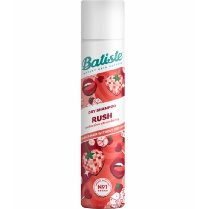 Batiste Rush är ett Limited Edition torrschampo med en doft av jordgubb kombinerat med feminina toner av rosor. Batiste Rush kan användas för att fräscha upp håret mellan hårtvättar. Batiste torrschampo är formulerat med rismjöl och tar effektivt bort överflödig olja vid rötterna och gör att håret känns rent och fräscht. Ger extra volym och textur för en uppfräschad look, och lämnar en doft i håret.