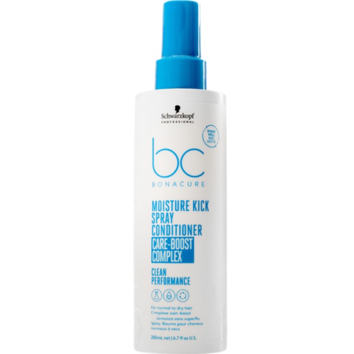 BC Bonacure Moisture Kick Spray Conditioner är ett omedelbart återfuktande och fjäderlätt spraybalsam för normalt till torrt, skört eller lockigt hår. Formuleringen hjälper till att bevara optimal fuktnivå för en lätt känsla i håret i upp till 48 timmar.