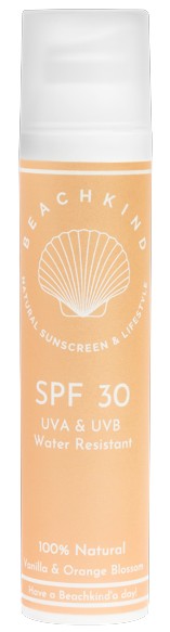 Beachkind solkräm skyddar huden mot UV-strålning med ett mineralfilter baserat på icke-nano zinkoxid. Solkrämen innehåller en s.k. ”Invisible Zinc” vilket innebär att den inte blir som en vit hinna på huden. Solskyddet innehåller naturliga oljor, smör och vaxer och är lättapplicerad och återfuktande. Beachkind solkräm SPF30 innehåller bl a sötmandelolja, sheasmör, hallonfröolja och vetegroddsolja. Kan användas till kroppen och till ansiktet. Vattenresistent.