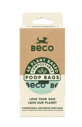 Becos nedbrytbara bajspåsar är påsar tillverkade av majsstärkelse. Nedbrytningen av påsarna börjar egentligen direkt efter tillverkning, och påsarna har därför en hållbarhet på 12-18 månader. Biologiskt nedbrytbara och komposterbara. Påsens storlek: 22,5 x 33 cm.