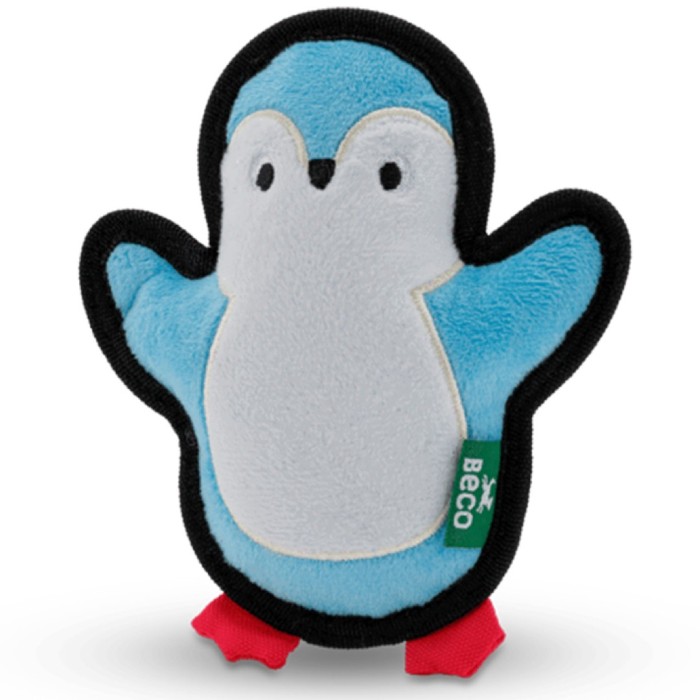 Beco Hundleksak Penguin Small 15 cm är en hundleksak tillverkad av återvunnet tyg och fyllning. Den söta leksaken är gjord med dubbla lager och dubbla sömmar för extra hållbarhet. Leksaken piper för att bjuda in till rolig lek för hunden.