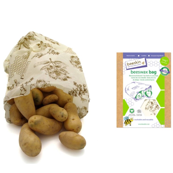 BeeSkin Bag är en påse som är som en kombinationen mellan bivax wraps och smörgåspåsar. Storleken 25 x 45 cm är stor nog för en brödlimpa. Hjälper till att hålla maten fräschare längre tid och förhindrar mat från att torka ut.