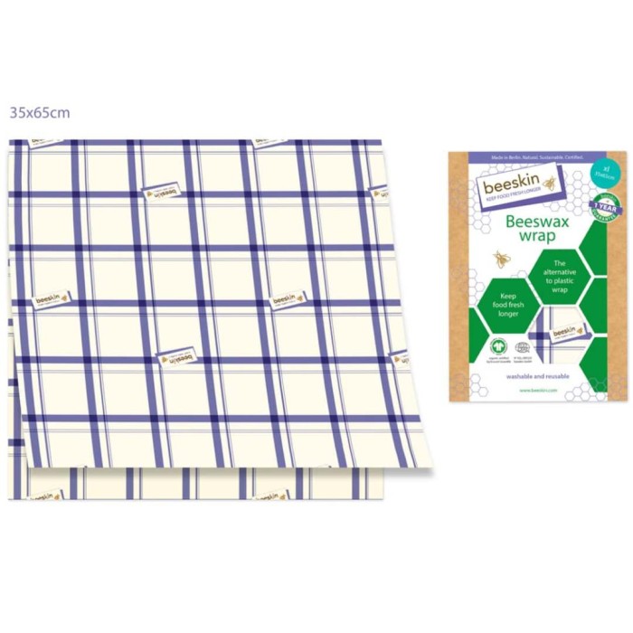 BeeSkin är ett återanvändningsbart alternativ till plastfolie. BeeSkins wraps är tillverkade av bomull och bivax och hjälper till att hålla maten färsk. XL är den största wrapen från BeeSkin i storlek 35x65cm. Denna går att använda till större skålar, salladshuvud, bröd med mera. Lägger du ihop två så går det även att täcka en ungsplåt.