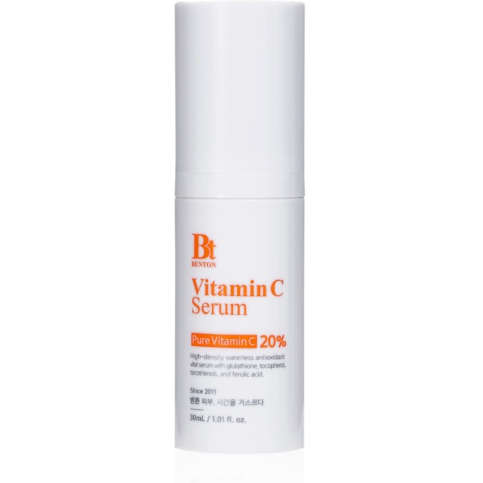 Benton Vitamin C Serum är ett ansiktsserum som innehåller C-vitamin och är framtaget för att hjälpa till att hålla huden slät och ungdomlig. Detta koncentrerade C-vitaminserum innehåller hela 20% stabiliserad C-vitamin i form av askorbinsyra, känt för sina uppljusande egenskaper samt förmågan att minska hyperpigmentering. C-vitamin bidrar också till att stimulera hudens elastin- och kollagensyntes för att hålla huden slät och ungdomlig.