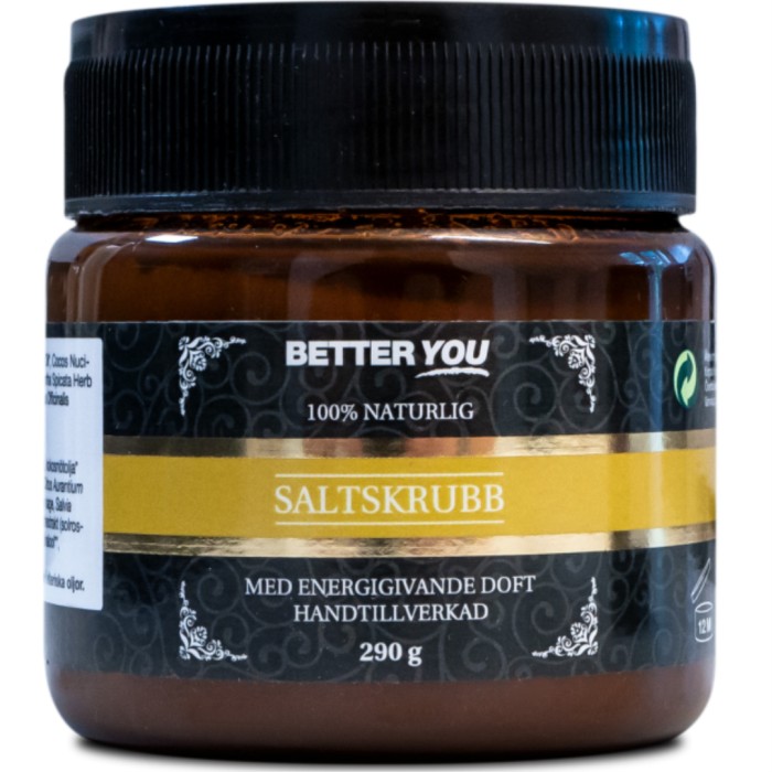 Better You Saltskrubb är en kroppspeeling som exfolierar huden varsamt och tar bort döda hudceller. Saltskrubb Energi är framtagen för att ge en vitaliserande och uppfriskande stund i duschen.
