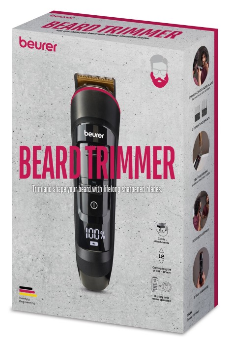 Skäggtrimmern Beurer MN4X har ett kraftfullt litiumbatteri för 90 minuters drifttid. 90 minuters laddtid. LED-display.