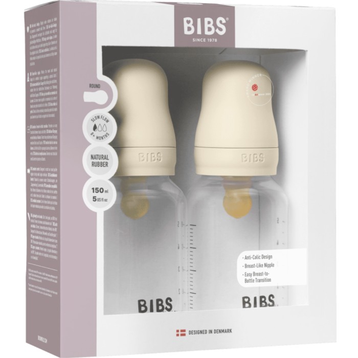 BIBS Baby Bottle Round Latex 2-pack 150 ml Slow Flow Ivory
