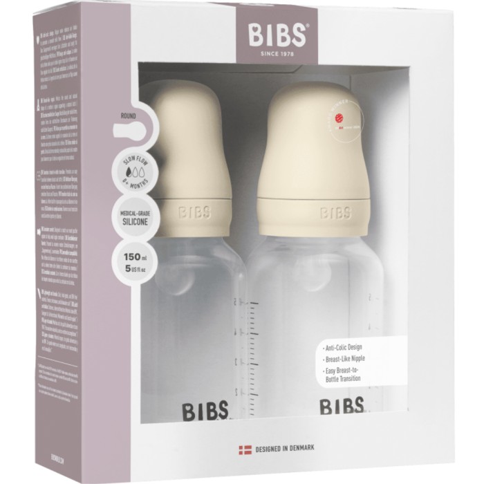 BIBS Baby Bottle Round Silicone 2-pack 150 ml Slow Flow Ivory