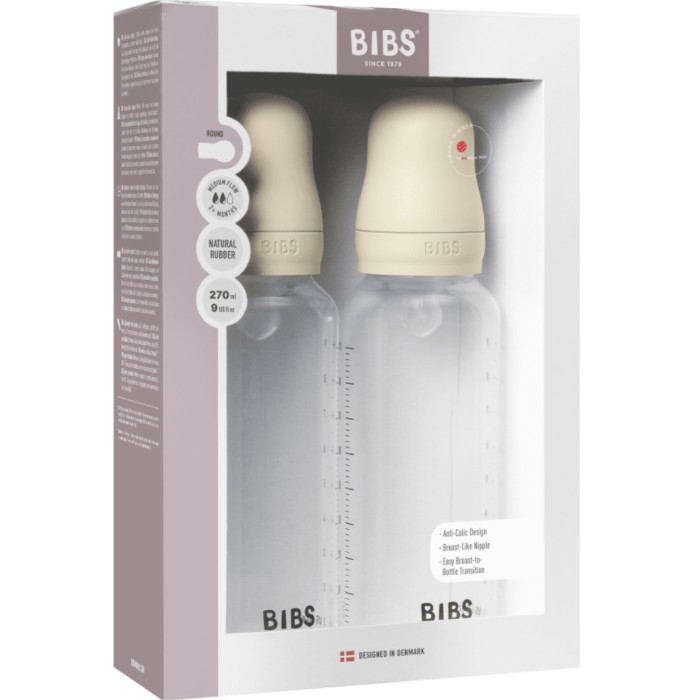 BIBS Baby Bottle Round Silicone 2-pack 270 ml Medium Flow Ivory