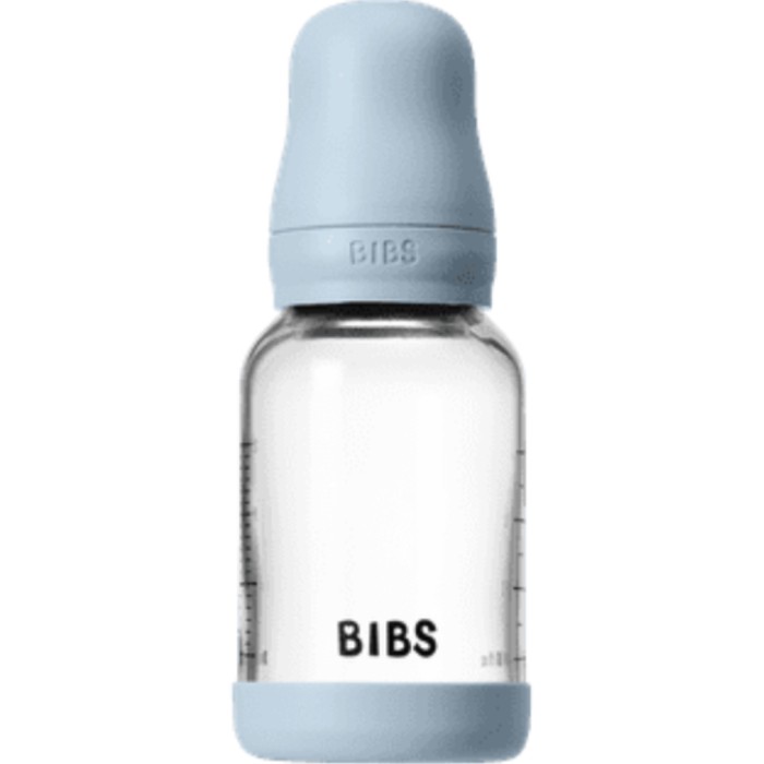 BIBS Baby Glass Bottle är en nappflaska av borosilikatglas, och har samma form på sugdelen som BIBS:s klassiska Colour-napp. Borosilikatglas tål snabba temperatur- och värmeförändringar och sugdelen är speciellt framtagen för att matcha sugdelen hos BIBS Colour-nappar. Flaskan har en anti-kolik-ventil för att ge ett bra flöde.
