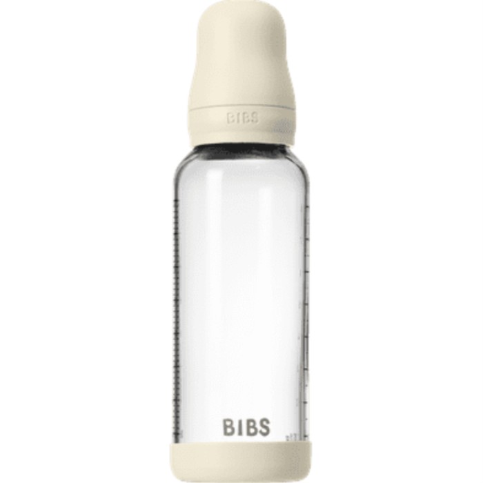BIBS Baby Glass Bottle är en nappflaska av borosilikatglas, och har samma form på sugdelen som BIBS:s klassiska Colour-napp. Borosilikatglas tål snabba temperatur- och värmeförändringar och sugdelen är speciellt framtagen för att matcha sugdelen hos BIBS Colour-nappar. Flaskan har en anti-kolik-ventil för att ge ett bra flöde.