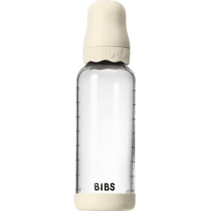 BIBS Baby Glass Bottle är designad för både bebisar och föräldrar. Flaskan är tillverkad av borosilikatglas som tål snabba temperatur- och värmeförändringar. Sugdelen är framtagen för att matcha sugdelen hos BIBS Colour-nappar. Flaskan har en anti-kolik-ventil för att ge ett bra flöde. Sugdelen är tillverkad av naturgummilatex.