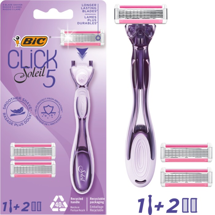 Detta set från BIC innehåller 1 st Click Soleil handtag och 2 st refillrakblad.