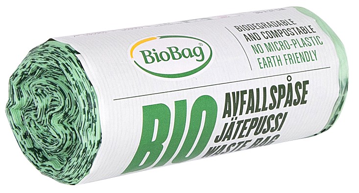 BioBag gör komposterbara och biologiskt nedbrytbara avfallspåsar. Påsarna efterlämnar inga mikroplaster och är tillverkade av förnyelsebara råvaror. Detta är en mindre påse som rymmer 6 liter.