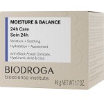 Biodroga BI Moisture & Balance 24h Care är en fuktgivande och mjukgörande ansiktskräm som återfuktar huden intensivt och fyller på hudens egna fuktdepåer. Krämen i serien Biodroga Bioscience Institute har en lugnande effekt på huden, och gör att huden känns välvårdad och får en smidig känsla. Kan användas till alla hudtyper, speciellt för normal till blandhud.