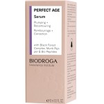 Biodroga BI Perfect Age Serum är vad Biodroga kallar ett "power serum" för mogen hud. Det silkeslätta serumet ger maximalt med anti-aging-aktiva ingredienser som stärker upp ansiktskonturen. Hudens elasticitet förbättras och ansiktskonturerna verkar mer definierade. Serumet gör så att rynkor och fina linjer orsakade av ansiktsuttryck minimeras. Innehåller Black Forest-komplexet som består av mossa, fläder och ormbunke för att stärka hudens motståndskraft och ge huden ny energi.
