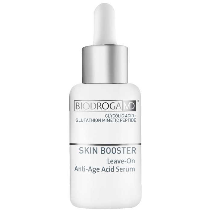 Biodroga MD Skin Booster Leave-On Anti-Age Acid Serum är ett serum med en kombination av syror och peptider. Serumet hjälper till att synligt minimera både fina linjer, rynkor, ojämnheter, pigmentfläckar och stora porer. Serumet är en kombination av peeling från syrorna, tillsammans med intensivt vårdande serum vilket ger det goda anti-age egenskaper.