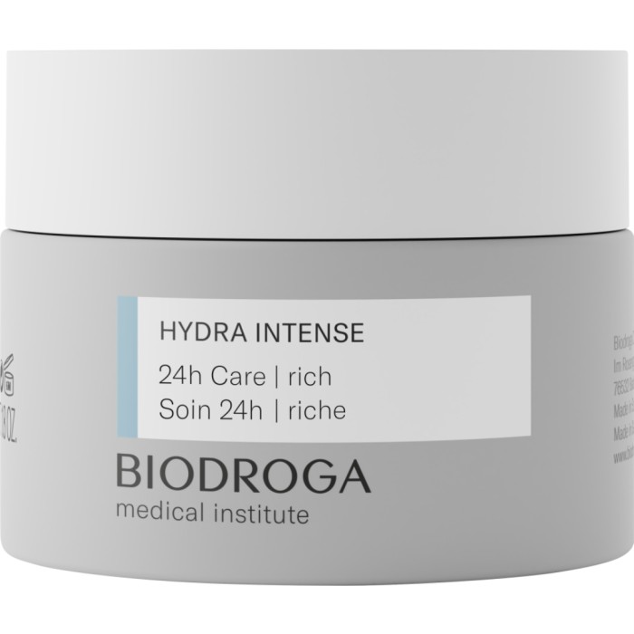 Biodroga MI Hydra Intense 24h Care Rich är en ansiktskräm för mycket torr med försämrad naturliga lipid och fuktreglering. Eftersom huden inte kan lagra fukt blir den då lätt reaktiv och dess funktionalitet blir störd. Denna ansiktskräm har en särskilt rik formulering med 3-D fuktboost, oligo-hyaluronsyra och ceramider för att ge näring och motverka lipidbrist. Återfuktar huden intensivt och aktiverar hudens egna fuktbindande kapacitet. Gör så att torrhetskänslor reduceras och att huden känns mjuk och len. Anpassad för alla hudtyper, speciellt för torr hud.