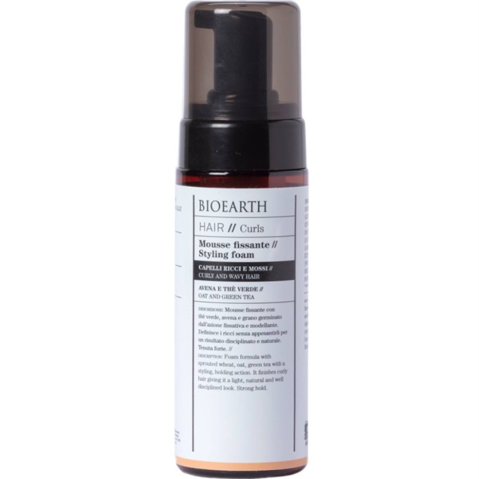 Bioearth Hair 2.0 Styling Foam är en hårmousse som ger lockigt hår naturlig stadga och formbarhet. Moussen för lockigt hår innehåller vetegroddar, havre och grönt te för att ge lockigt hår naturlig stadga och formbarhet. Stark stadga.