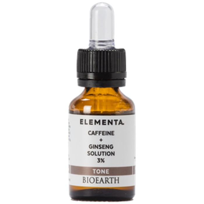 Bioearth Tone Caffein 5% + Ginseng 1% är ett ekologiskt ansiktsserum från Bioearth. Serumet tonar huden, och ökar dess spänst och elasticitet. Hudens känns fast och serumet minskar eventuell puffighet och svullnad. Serumet kan användas dag och natt, lokalt runt ögonområdet eller där du behöver det.