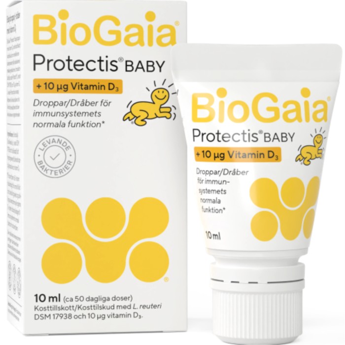 BioGaia Protectis droppar med D-vitamin är ett kosttillskott med 100 miljoner levande mjölksyrabakterier och 10 ug vitamin D per dagsdos. För vuxna och barn från födseln. 5 droppar om dagen - enkel att dosera. Barn behöver D-vitamin för normal tillväxt och utveckling av benstomme. D-vitamin bidrar till immunsystemets normala funktion.