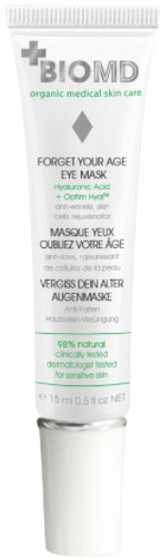 BioMD Forget Your Age Eye Mask är en ögonmask framtagen för att lugna, återfukta och vårda den känsliga huden runt ögonen. BioMDs ögonmask innehåller aktiva ingredienser och naturliga oljor för att vårda huden och reducera mörka ringar och påsar under ögonen och göra rynkor mindre synliga.