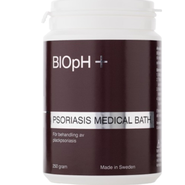 BIOpH Psoriasis Medical Bath är en medicinsk behandling för plackpsoriasis. En symtomlindrande behandling som utförs på påverkad kroppsdel i ett vattenbad tillsammans med granulatet. Badet har en avfjällande effekt vilket är en av grundpelarna i behandlingen av sjukdomstillståndet. Genom att avlägsna placken kommer man lättare åt med ytterligare behandlingar såsom ljusterapi och mjukgörande krämer.
