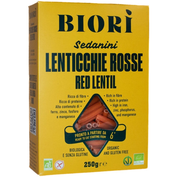 Biori Glutenfri Pasta Röda Linser Sedanini 250 g