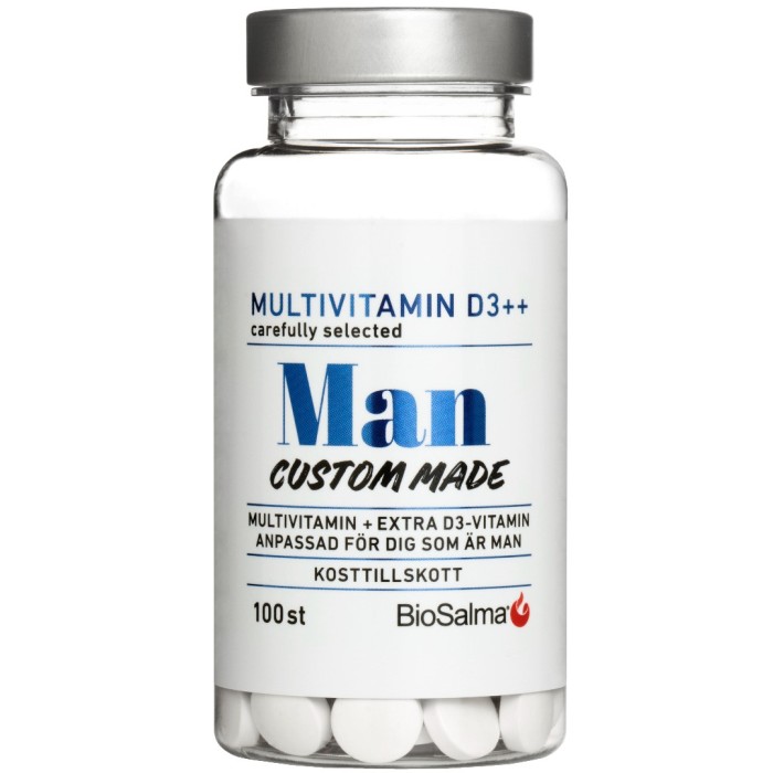 BioSalma Multivitamin D3++ Man är ett kosttillskott anpassat för män. Detta kosttillskott innehåller extra D3-vitamin.