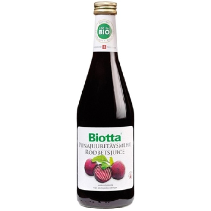 Biotta Rödbetsjuice är en juice pressad av nyskördade, ekologiska rödbetor. Rödbetor innehåller naturligt höga halter av nitrat och flavonoider och har blivit populärt bland de som tränar uthållighetskrävande sporter. Rödbetorna i Biottas juice växer runt Bodensjön i Schweiz.