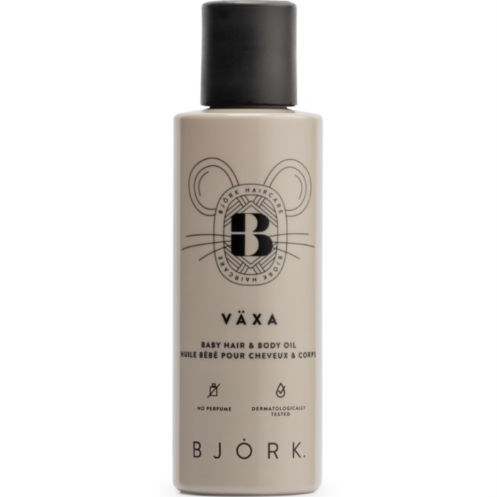 Björk VÄXA Baby Hair & Body Oil är en vårdande, fuktgivande och mjukgörande olja för baby och barn. Hudoljan har en formulering med havre och solrosolja och är fint spridbar och lätt att applicera.