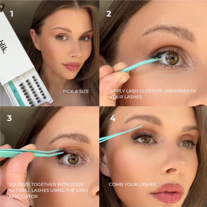 Blik. Press-On Lash Clusters Violette är självhäftande fransar som ger en fransförlägning snabbt och enkelt.