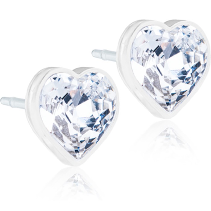 Blomdahl MP Heart Crystal är hjärtformade örhängen i ren medicinsk plast med klar kristallsten. De är så lätta att du kan använda dem dagligen. Örhängena levereras i en så kallad Clean Pack som förvarar smycket hygieniskt tills du öppnar förpackningen. Etiketten fungerar som ett sigill.