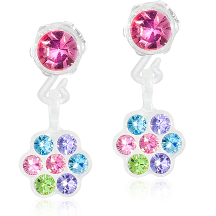 Blomdahl MP Pendant Daisy Light Fantasy är fina örhängen i ren medicinsk plast med en hängande blomma med kristaller i flera färger. De är så lätta att du kan använda dem dagligen. Örhängena levereras i en så kallad Clean Pack som förvarar smycket hygieniskt tills du öppnar förpackningen. Etiketten fungerar som ett sigill.