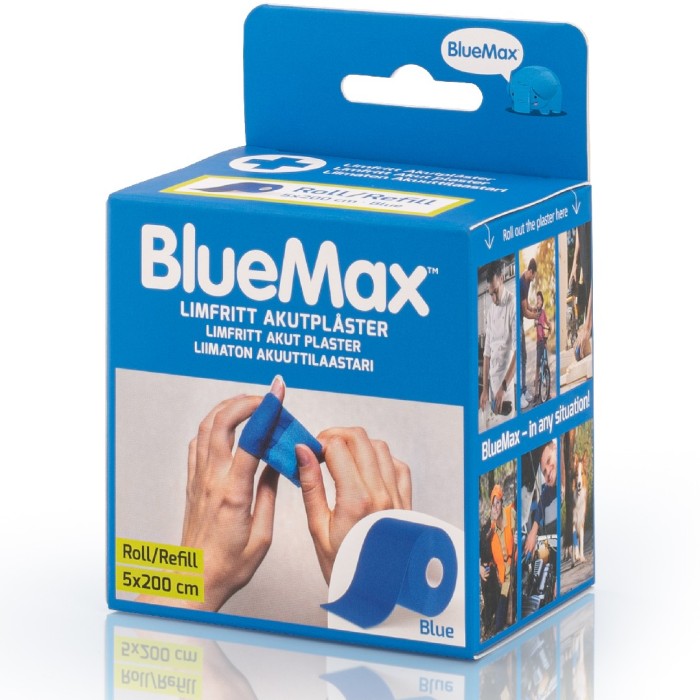 Refill till BlueMax, ett elastiskt akutplåster som inte fastnar i hår, på hud eller i sår. BlueMax kan även användas på hundar, katter, hästar och andra djur.
