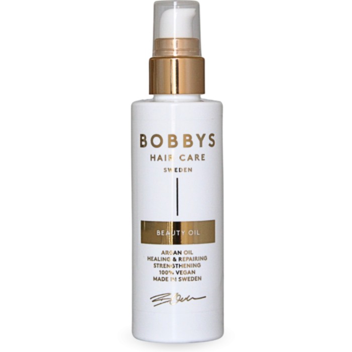 Bobbys Haircare Beauty Oil är en hårolja som innehåller arganolja och hjälper till att bevara fukten i håret. Håroljan ger näring till torrt och livlöst hår, och ger håret en mjuk och glansig finish utan att tynga ner. Bobbys hårolja lägger sig som ett skyddande lager kring hårtopparna för att vårda och reparera skadat hår.