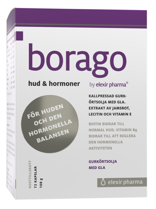 Elexir Borago är ett kosttillskott för kvinnor. Det innehåller ekologisk kallpressad gurkörtsolja, jamsrot och utvalda vitaminer. Gurkört är naturens rikaste källa till GLA, gammalinolensyra. I kroppen omvandlas GLA bland annat till prostaglandiner som ingår i många viktiga processer i kroppen.