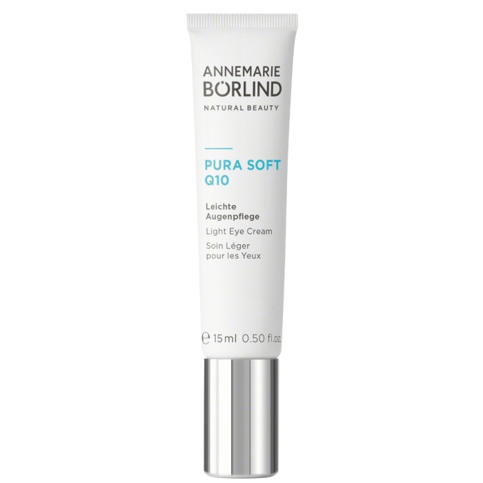 Börlind Pura Soft Q10 Light Eye Cream är en lätt och återfuktande ögonkräm framtagen för att minimerar rynkor och fina linjer tack vare coenzym Q10. Börlinds ögonkräm innehåller åkerfräken som bidrar till att göra huden fastare. Går bra att använda under makeup. Parfymfri.